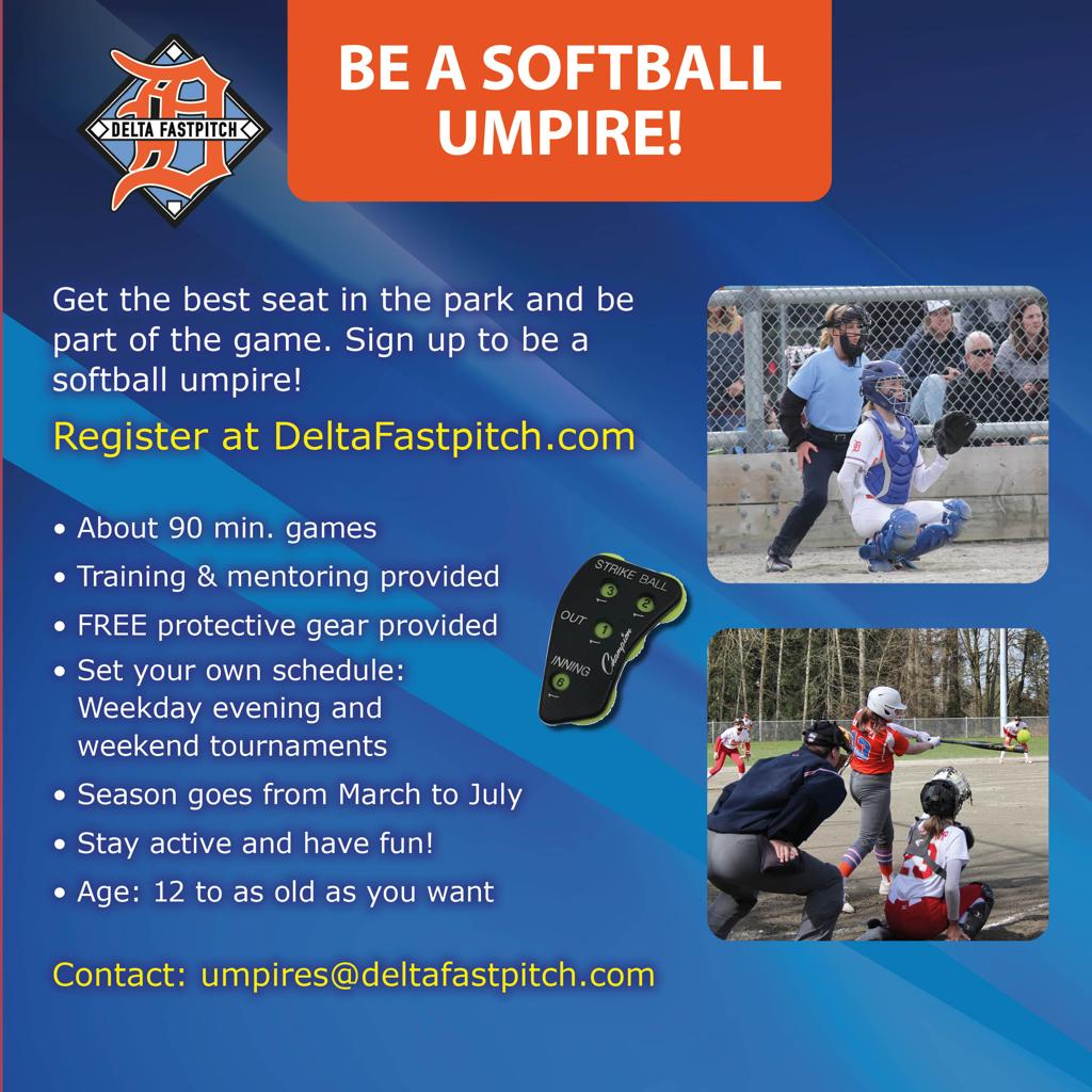 If unsure about umpirinng, wait until you do the clinic with Delta Fastpitch before you register with Softball BC. After the clinic, you can make a decision, and if this is for you, then register with Softball BC.